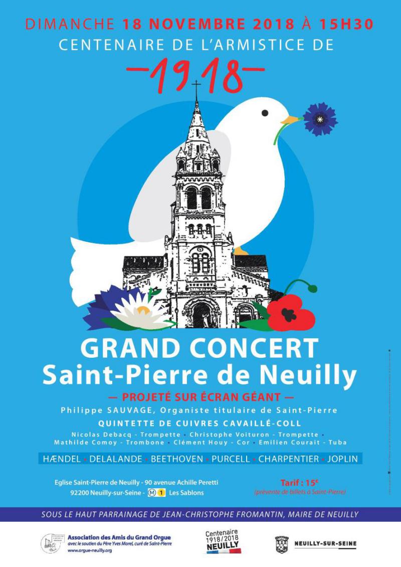 Un concert d’orgue a été donné en commémoration de l’armistice de 1918 à Neuilly-sur-Seine le dimanche 18 Novembre.